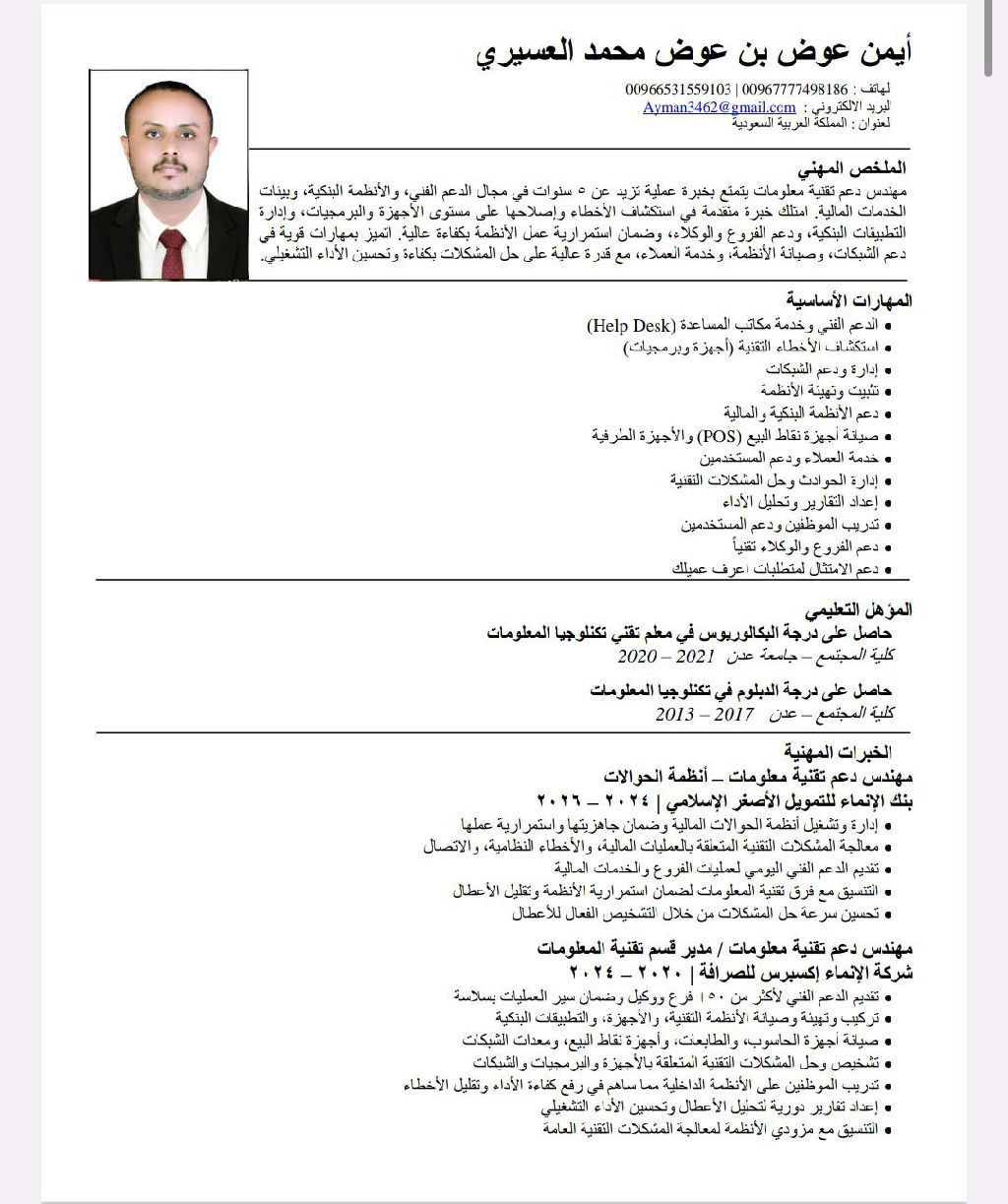 ابحث عن وظيفة شاغرة انظر للسيرة الذاتية متواجد حاليا في الرياض دعم فني حاسوب - خدمة العملاء - ادخال بيانات - أي وظيفة مناسبة شاغرة مستعد للعمل فورا
