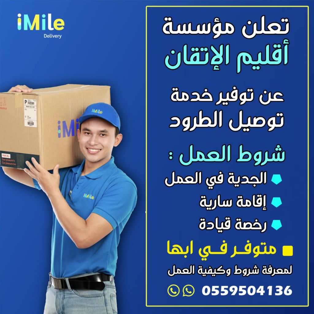 تعلن شركة إقليم الاتقان عن وظائف مناديل توصيل طرود شركة مشغلة جميع المهن مقبولة دوام حر بوقت مرن يناسبك طلبات في كل مكان داخل المملكة بدون نقل كفالة بدون قيود وبدون أي رسوم فتح حساب تحويل بنكي التفعيل فوري في نفس الوقت برقمك الشخصي متابعة مستمرة والمساعدة عند حدوث أي مشكلة رفع الشكاوى بدون أي تقصير مقرات الشركة أبها - خميس مشيط - شارع الصناعية لقصيم للتسجيل والتفاصيل اتصال واتساب احجز حسابك الآن