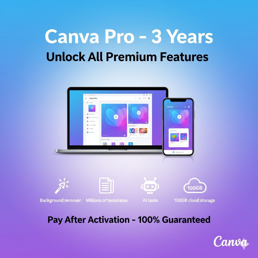 3 years Canva Pro at a cost beyond imagination All paid design tools Remove background Millions of ready made images and templates AI tools Large cloud storage Unlock all the possibilities of Canva and make your work look professional from the first day Contact us now and be one of the first to benefit