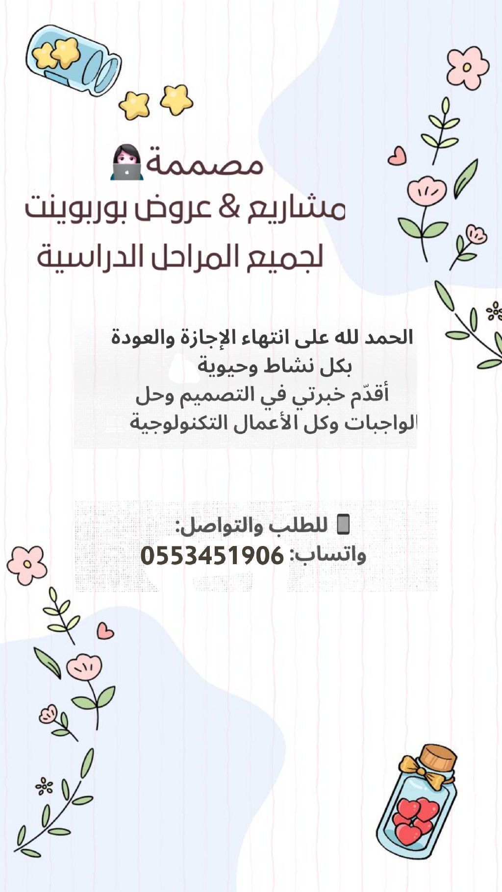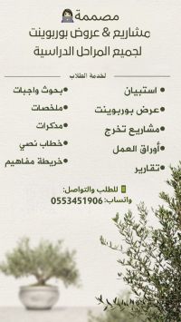 مدرسية وحصص وتصاميم بوربوينت استعدوا لعام دراسي مميز نقدم لكم حصص مدرسية تفاعلية بأسلوب سهل وممتع. عروض بوربوينت جاهزة بأفكار ابداعية تناسب جميع المواد. تصاميم تعليمية مرتبة تساعد على تبسيط المعلومات للطلاب. كل تصميم مدروس بعناية ليسهل الفهم ويجذب الانتباه. معنا التعليم يصير أسهل. وأجمل
