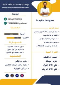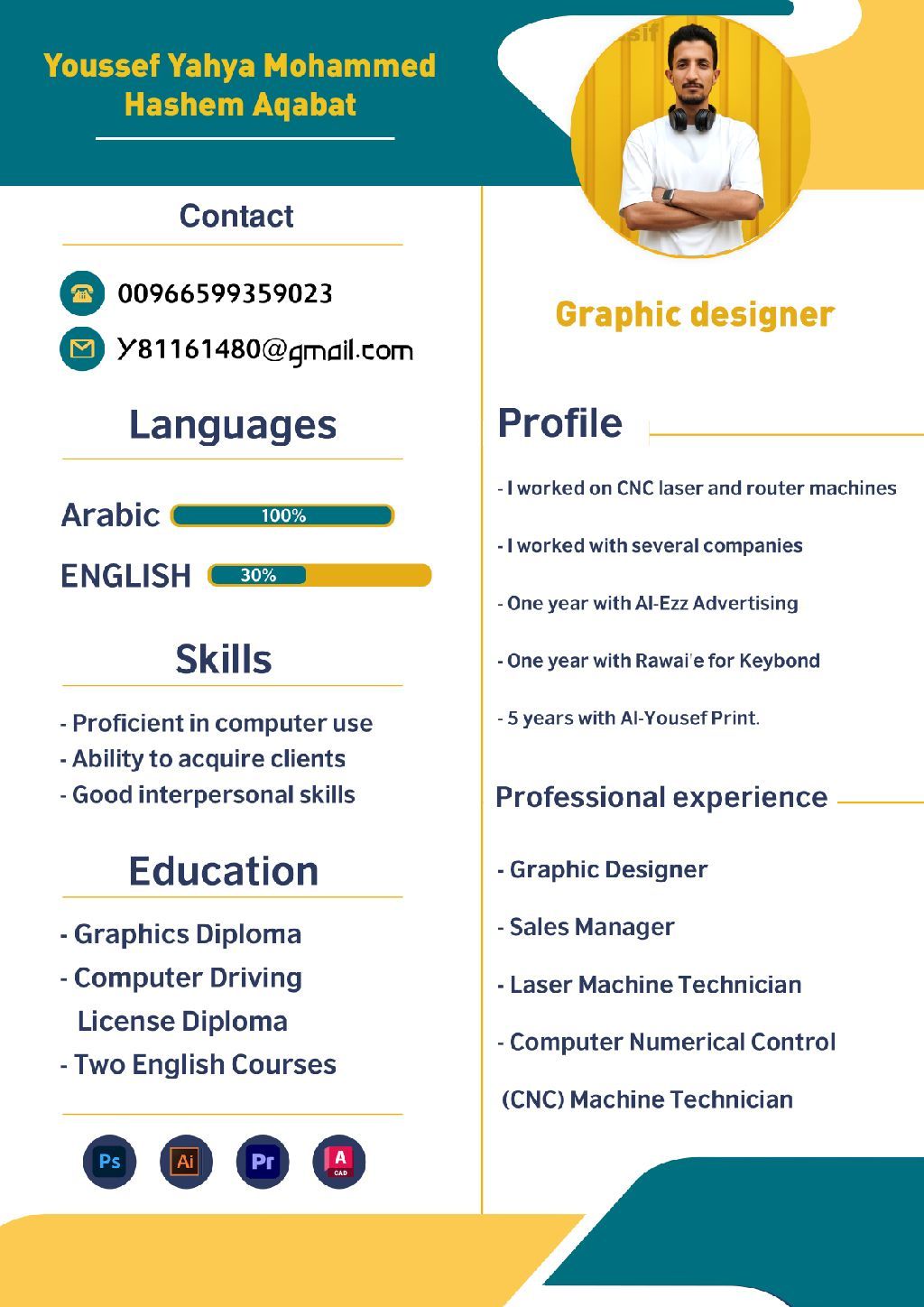 مصمم جرافيكس ومندوب مبيعات وتسويق خبرة لا تقل عن 7 سنوات في مجال الدعاية والاعلان وكذلك التسويق الاعلاني خبير في مكائن الطباعة وكذلك مكائن اللوتر والليزر والستيكر وكذلك أجيد التلصيق لاصق شبكي مخرم