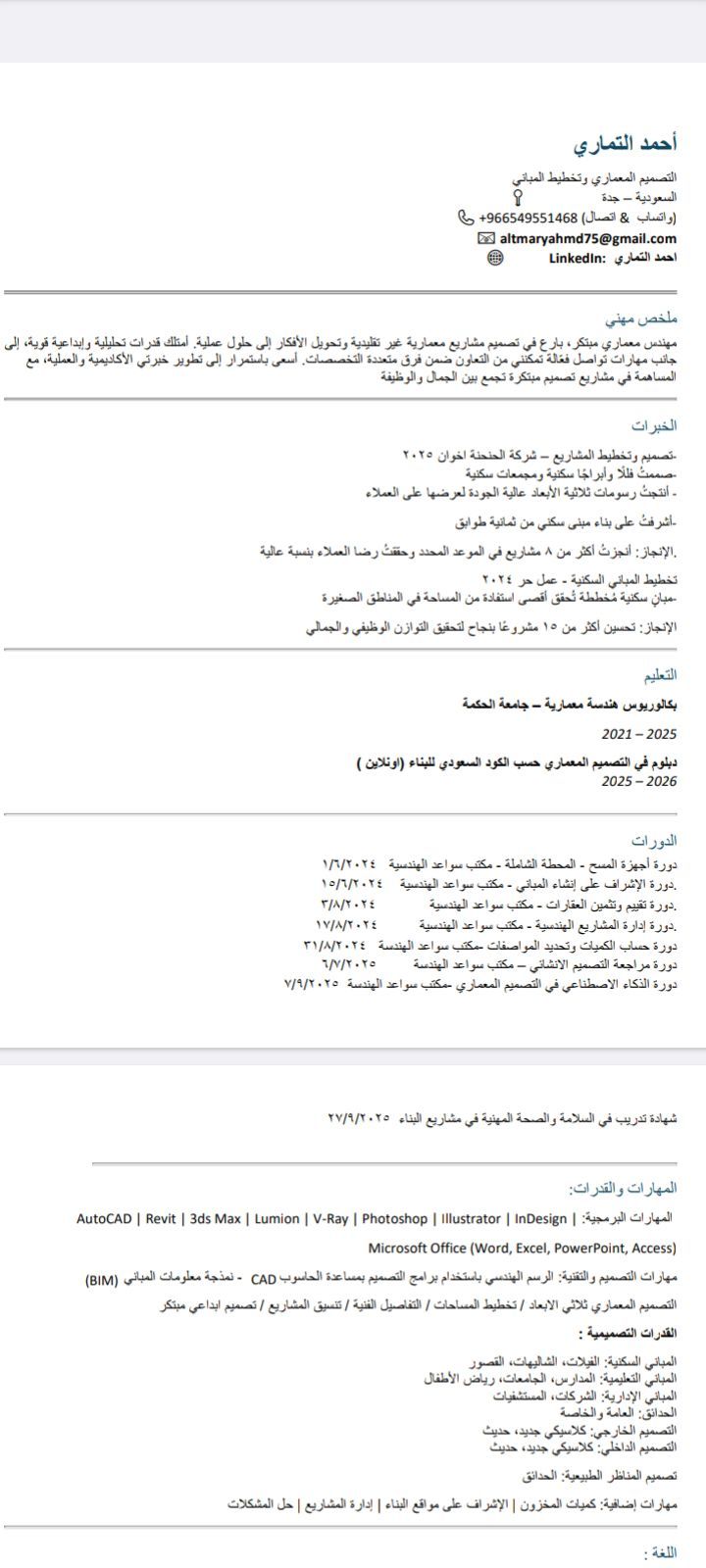 مهندس معماري ابحث عن فرصة عمل لدى مكتب هندسي أو شركة هندسيه