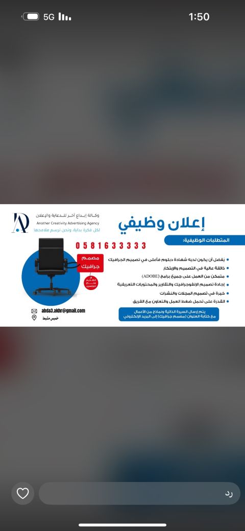 مطلوب مصمم جرافيكس يعمل لدى وكالة دعاية واعلان شهيرة في خميس مشيط