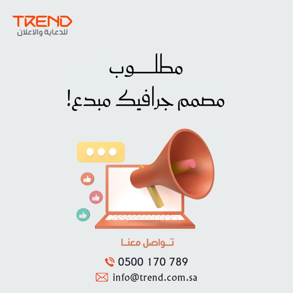 اعلان وظيفة مصمم / مصممة جرافيك مبدع / ة الشركة تر يند للدعاية والاعلان المكان مدينة أبها حي المنهل) نوع الوظيفة دوام كامل المسؤوليات والواجبات الأساسية نحن نبحث عن مصمم / ة جرافيك موهوب / ة لانشاء محتوى مرئي جذاب وفعال. ستكون مسؤول / ة عن تصميم مجموعة واسعة من المواد التسويقية والاعلانية الرقمية والمطبوعة. تطوير مفاهيم وابداعات للوسائط المتعددة بما في ذلك وسائل التواصل الاجتماعي، موقع الشركة