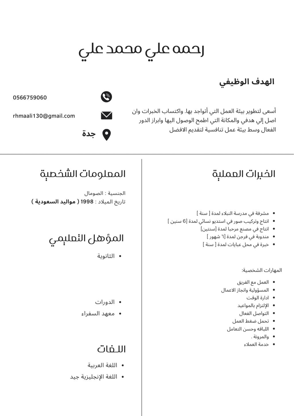 ابحث عن العمل أطمح أن أكون جزء من منظمة عمل متعاونة تمكنني من الاستفادة من المؤهلات والمهارات التي حصلت عليها، وتحقيق ما يطلب مني لرفع كفاءتها ومكاسبها ومواصلة التعليم والعمل على تطوير معلوماتي ومهاراتي العملية والعلمية