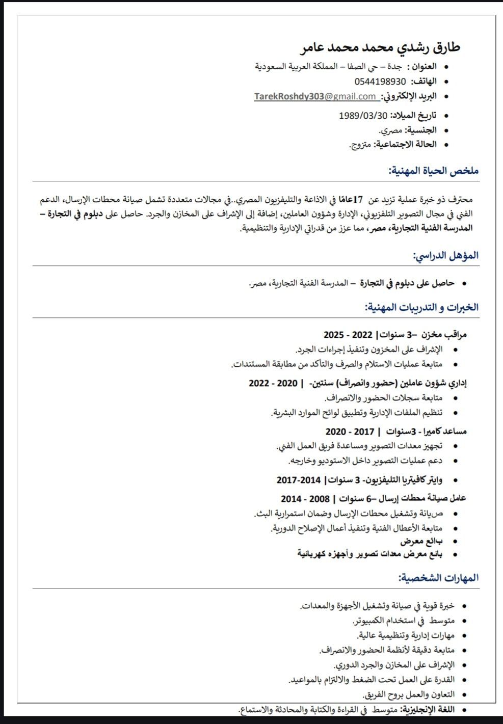 مصري مقيم داخل المملكة إقامة سارية سنة ابحث عن عمل في أكثر من تخصص أمين مستودع. وايتر. عامل ومتاح لاستلام العمل فورا