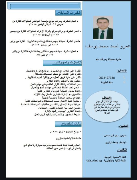 مشرف عمال ومراقب موقع من الجنسية المصرية ابحث عن شركة متميزه