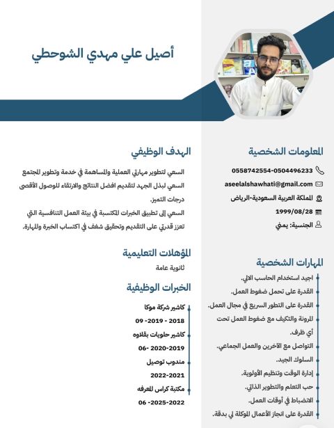 الاسم فارس العمر 24 سنة المهنة مندوب مبيعات متواجد داخل المملكة خبرة المبيعات. ابحث عن عمل مناسب معيا أقامه سارية سنة ورخصة قيادة سارية 5 سنوات