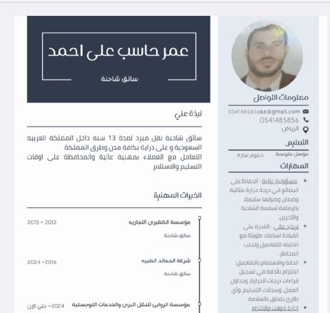 سائق شاحنة رخصة سارية أوراقي سليمة لحد شهر 6 خبرة بالمملكة 6 سنوات كسائق ناقلة نقل ثقيل ابحث عن فرصة عمل وجاهز للعمل مباشرة ونقل الكفالة رقمي