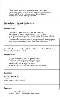 أنا سائق محترف موجود حاليا في مدينة جدة بالمملكة العربية السعودية، وحاصل على تأشيرة تخميل وتنظىل. ابحث عن فرصة عمل كسائق لدى شركة أو عائلة. خبرة في القيادة المحترفة تأشيرة تخميل وتنظىل سارية المفعول التزام تام بالمواعيد والمسؤولية معرفة جيدة بمناطق جدة والمناطق المحيطة فهم أساسي لصيانة المركبات للتواصل معي