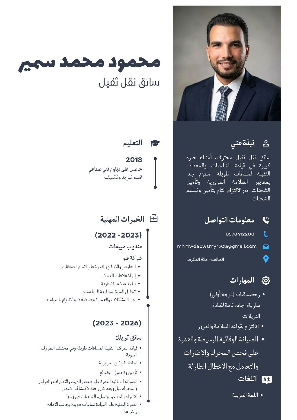 سائق نقل ثقيل لدي اقامة سارية ورخصة قيادة سارية خبرة 5 سنين ابحث عن فرصة عمل لدى شركة براتب مجزي