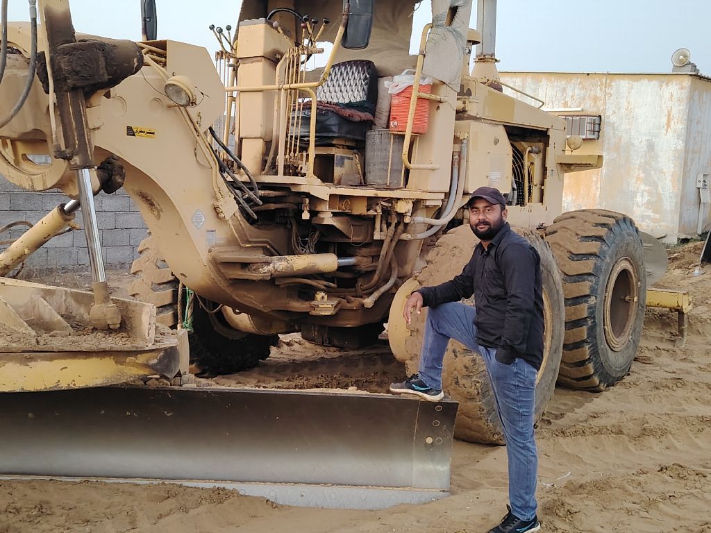 أنا محمد رياض الدين. الجنسية الهند. سائق جريدر، خبرة 15 سنة طرق مواصلات