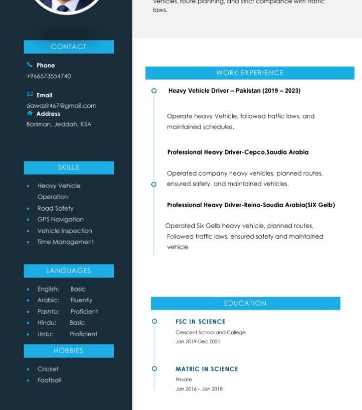 I am in Jeddah, Saudi Arabia. I have an HTV driving license. If anyone has work available (6 - wheel truck, trailer, Dyna, or any driving job) please contact me