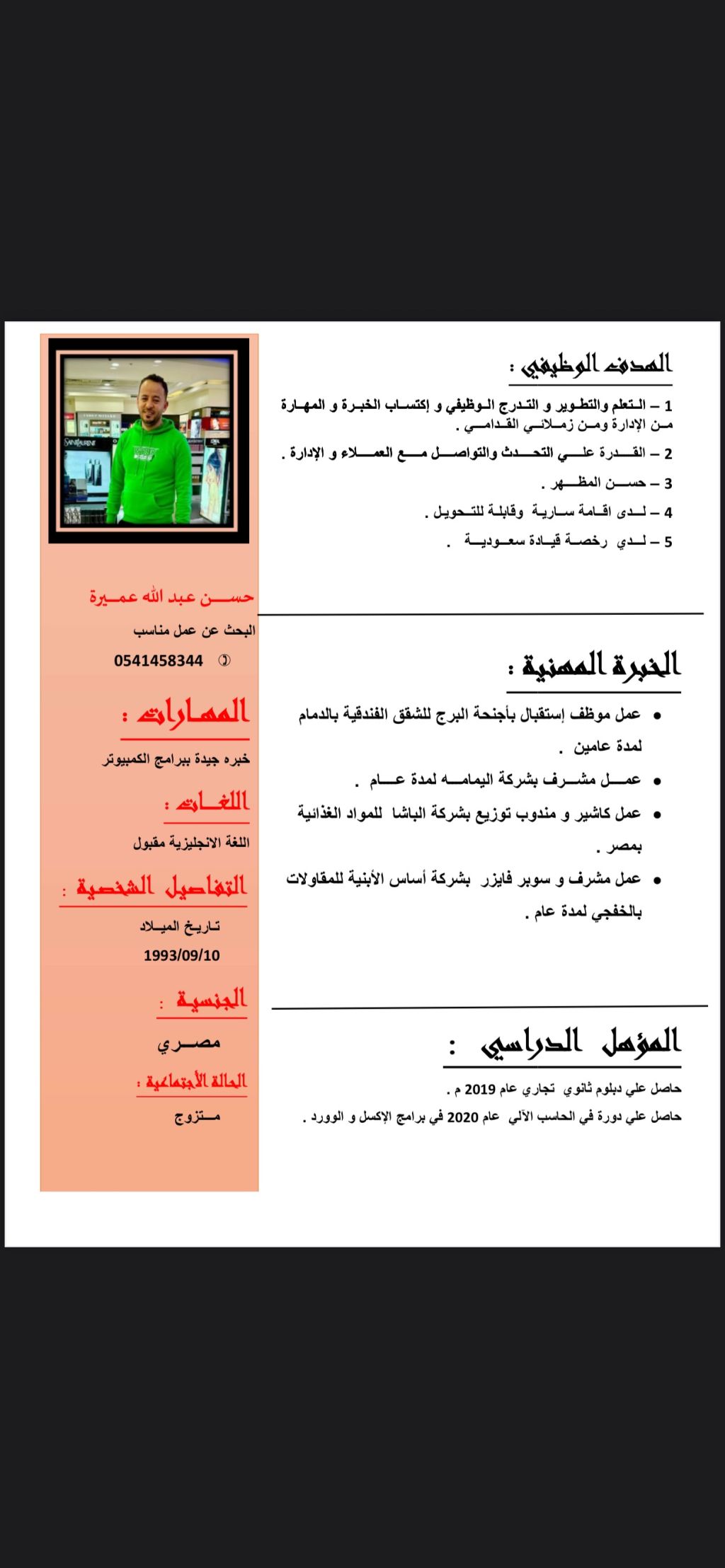ابحث عن فرصة عمل عملت موظف استقبال بالفنادق ولدي رخصة قيادة سعوديه