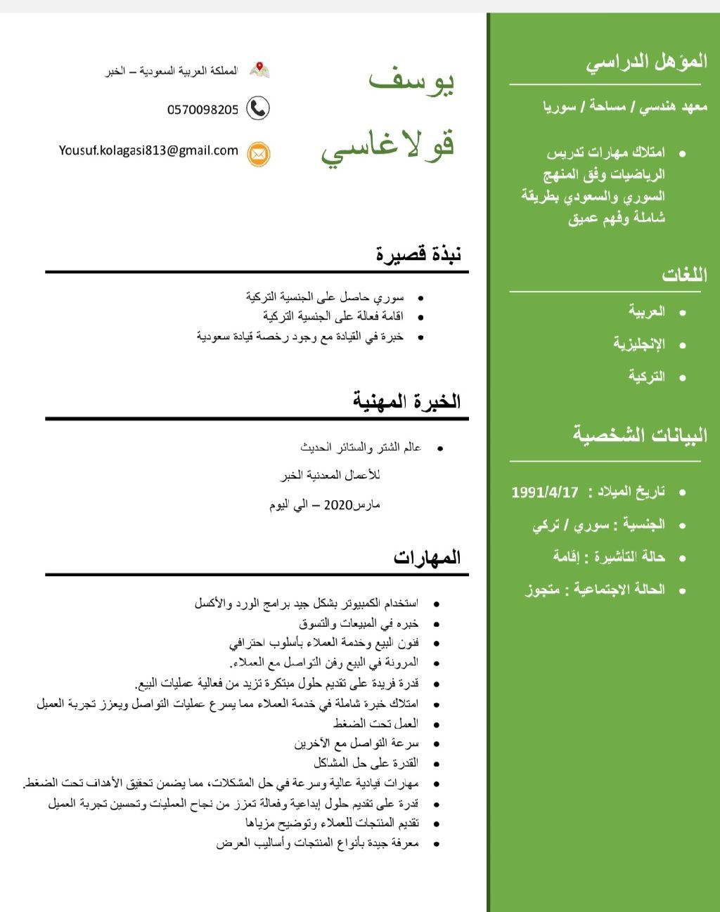 ابحث عن عمل الاسم يوسف قولاغاسي المنطقة الشرقية - الخبر إقامة سارية + رخصة قيادة متفرغ للعمل فورا للتواصل واتساب / اتصال