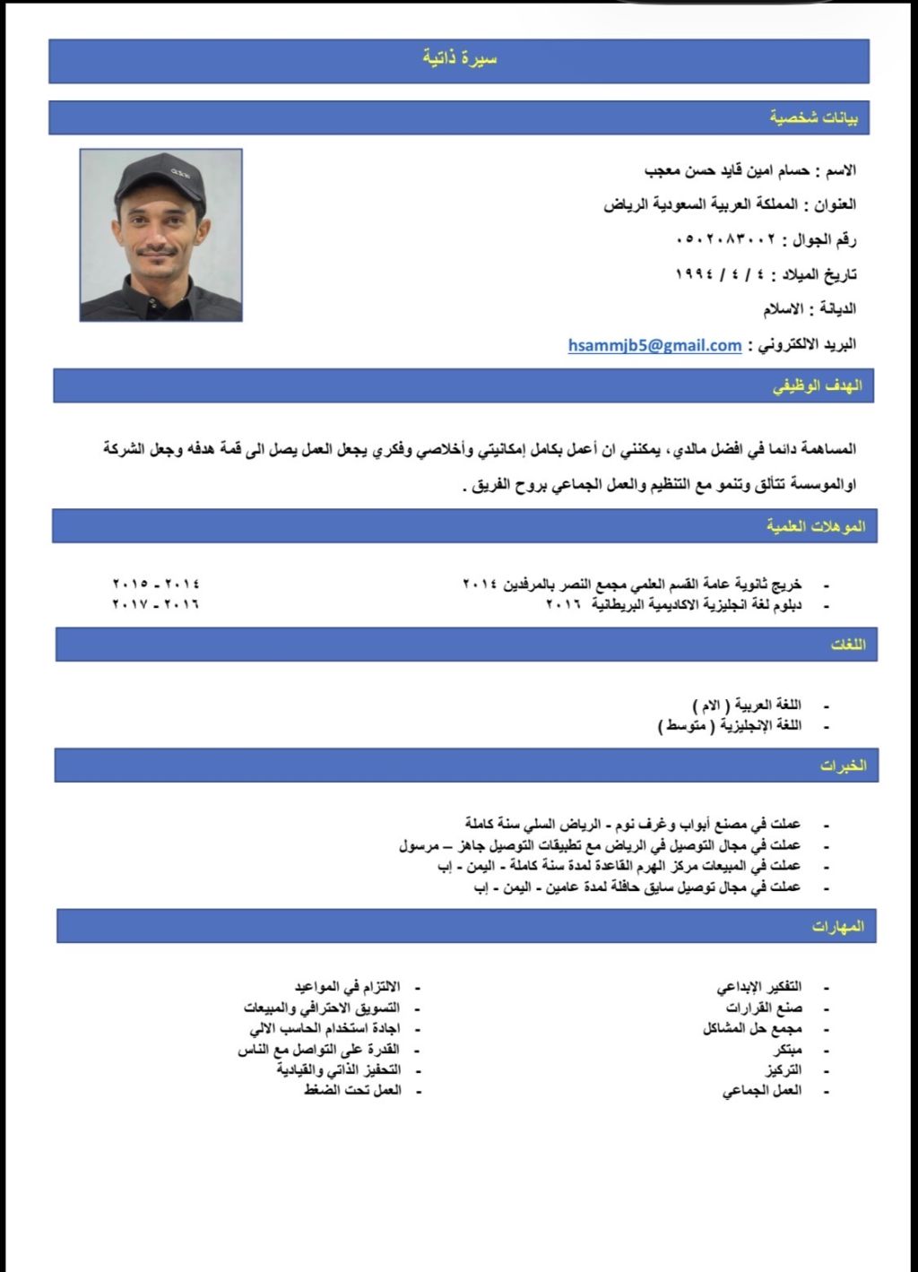 مقيم يمني إقامة سارية، ابحث عن عمل في أي مجال عندي خبرة في تعامل مع الزبائن حسن المظهر والسلوك شهادة ثانوية دبلوم صيدلة للتواصل