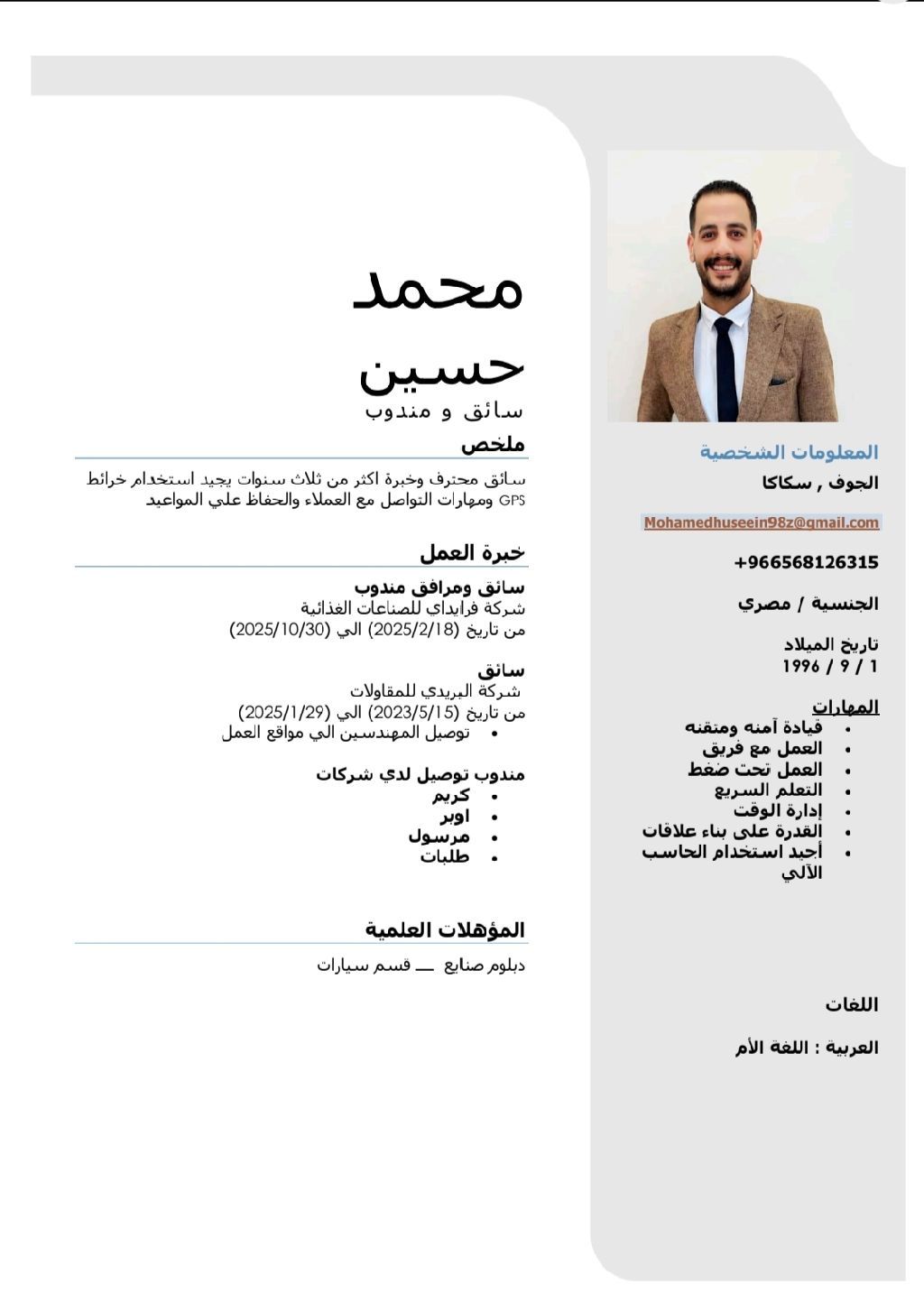 سائق محترف خبرة أكثر من ثلاث سنوات في القيادة، ابحث عن عمل