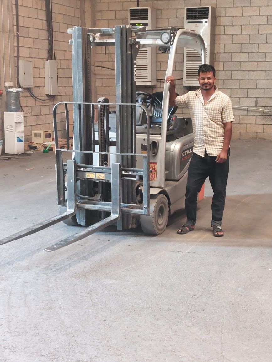 سائق فوركلفت سوداني العمر 29 سنة خبرة 6 سنوات في السعودية ترتيب المستودعات وتحميل وتنزيل
