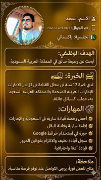 Pakistani national with 12 years of solid experience in UAE & KSA. Expertise in Family & School Bus driving. Experienced Site Supervisor & Purchasing Mandoob. Certified Safety Officer (Diploma Holder) Proven track record in construction site management and material logistics. Looking for a challenging role with a competitive salary. Valid GCC experience and strong work ethic
