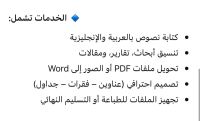 كتابة وتنسيق احترافي على Word هل تبحث عن عمل أنيق، منسق، وجاهز للتسليم بدون صداع أنا أقدم لك خدمة كتابة وتنسيق احترافي باستخدام برنامج Word، بدقة وسرعة عالية