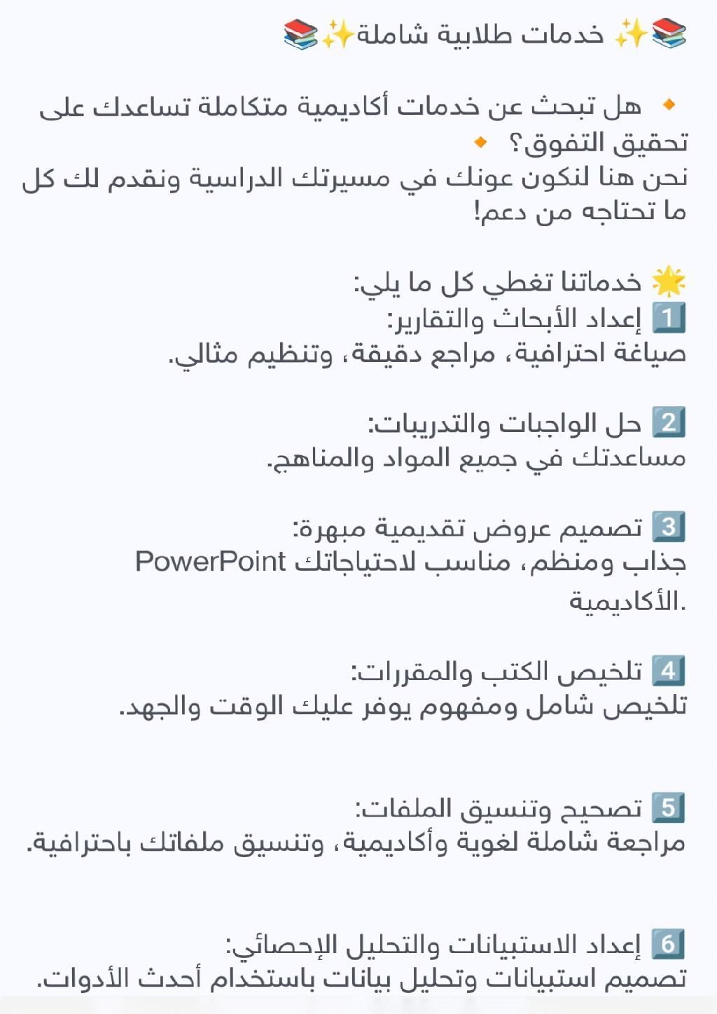 خدمة طلابية واحترافية مضمونة تحتاج مساعدة في عمل البحوث الجامعية أو المدرسية أو ترجمة ملفات PDF - تقارير طبية - واجبات - مشاريع أنا أقدم لك خدماتي باحتراف وجودة عالية اعداد بحوث علمية