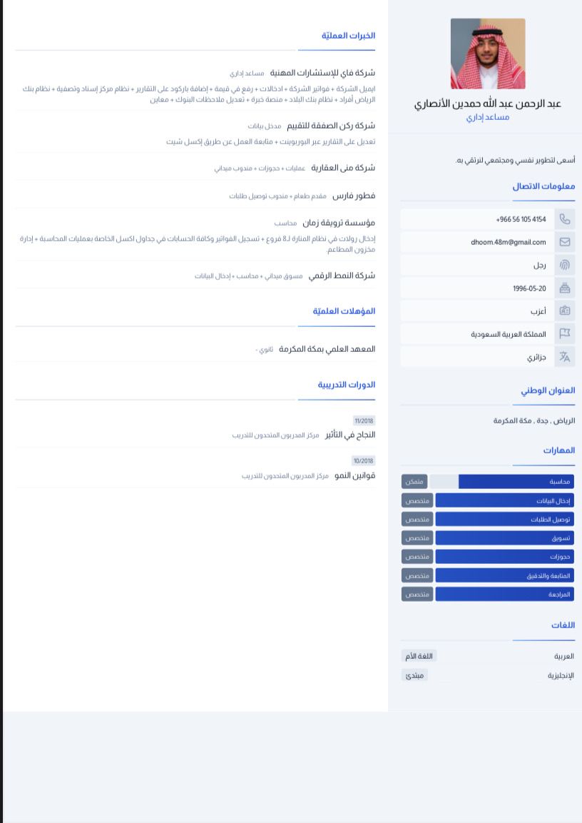 أتقدم اليكم بطلب الانضمام الى فريق عمل شركة كم الموقرة في حال وجد شاغر لديكم يتناسب مع ما لدي من خبرة ومهارات. مساعد اداري - مدخل بيانات - مدقق - مراجع