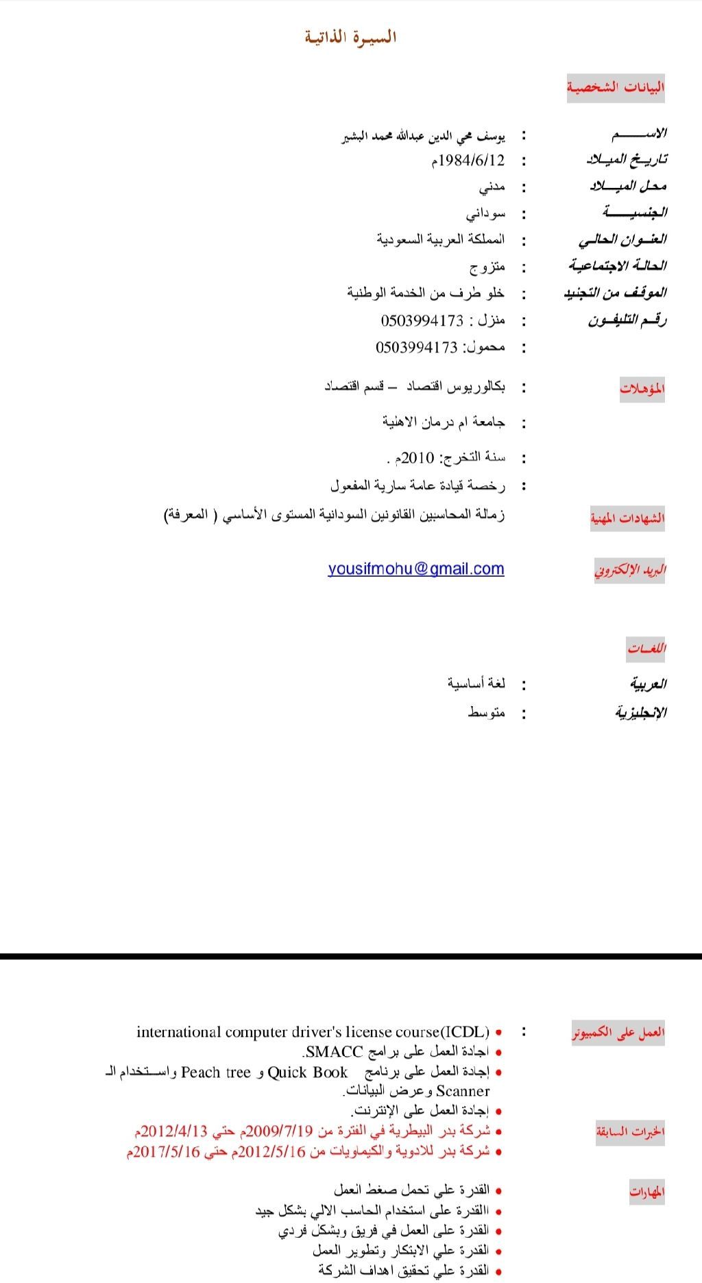سوداني الجنسية متواجد بالمملكة العربية السعودية ابحث عن عمل المجالات خبرة في مجال المحاسبه الماليه 10 سنوات خبرة في مجال الادارة خبرة في مجال الحاسوب الآلي كاشير أمين مستودع موظف فندق لدي اقامة سارية المفعول جاهز للعمل إن شاء الله