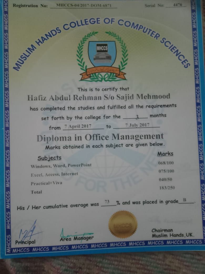 My name Abdul Rehman Sajid Mahmoud I live in Abha Saudi Arabia l need job I have diploma in office management and diploma in commerce