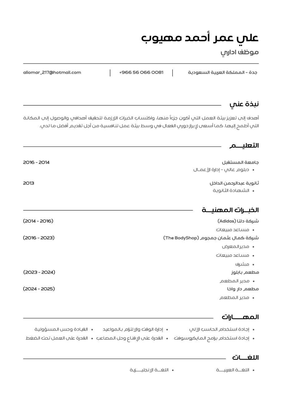 خبرة في ادارة فريق والمبيعات كمدير خبرة في ادارة المطاعم