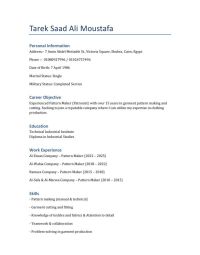 أسعى في العمل بشركة مرموقه أساهم فيها بخبراتي ومهاراتي في مجال انتاج الملابس