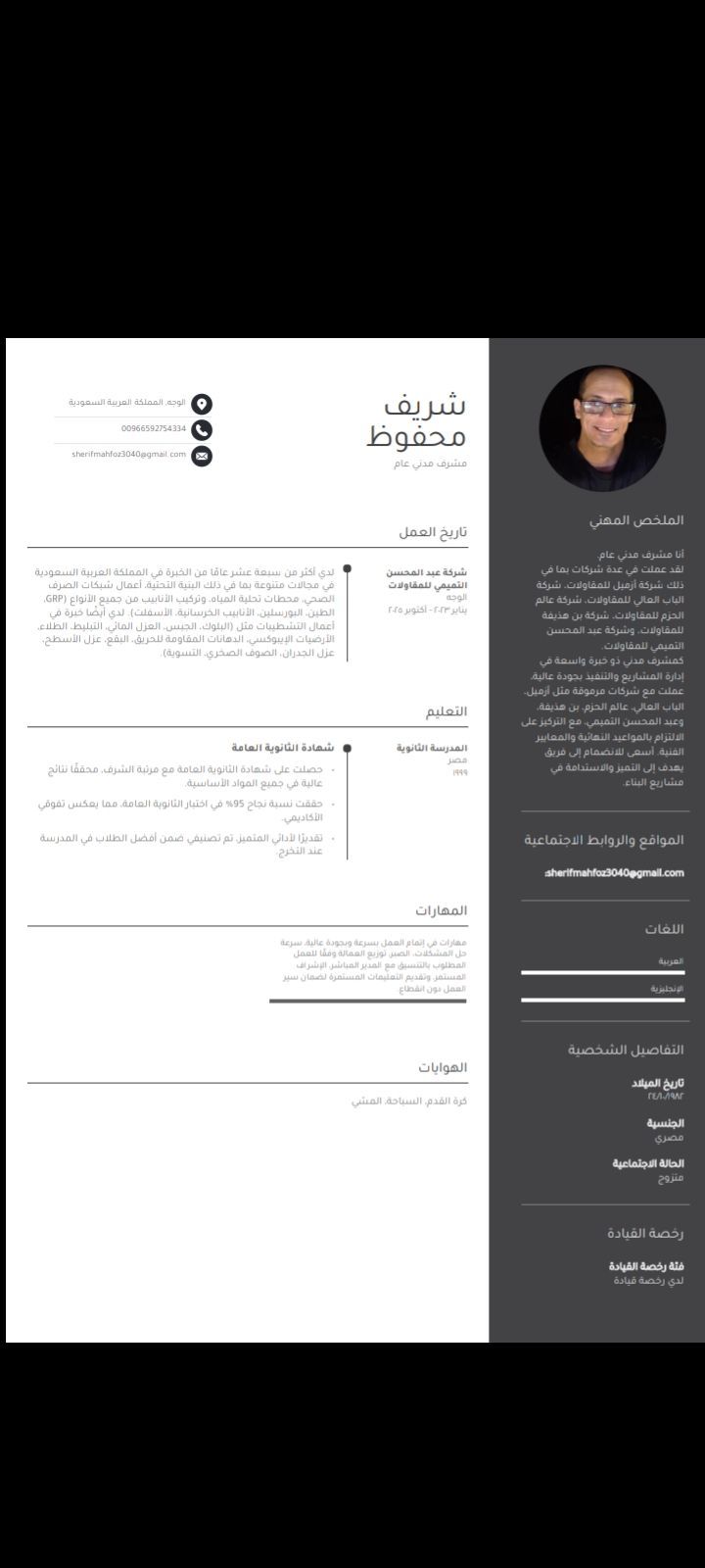 فورمان مصري (جوكر) خبرة واسعه البنيه التحتية ويجيد القيادة ويحمل رخصة جاهز للعمل بأي مكان داخل المملكة