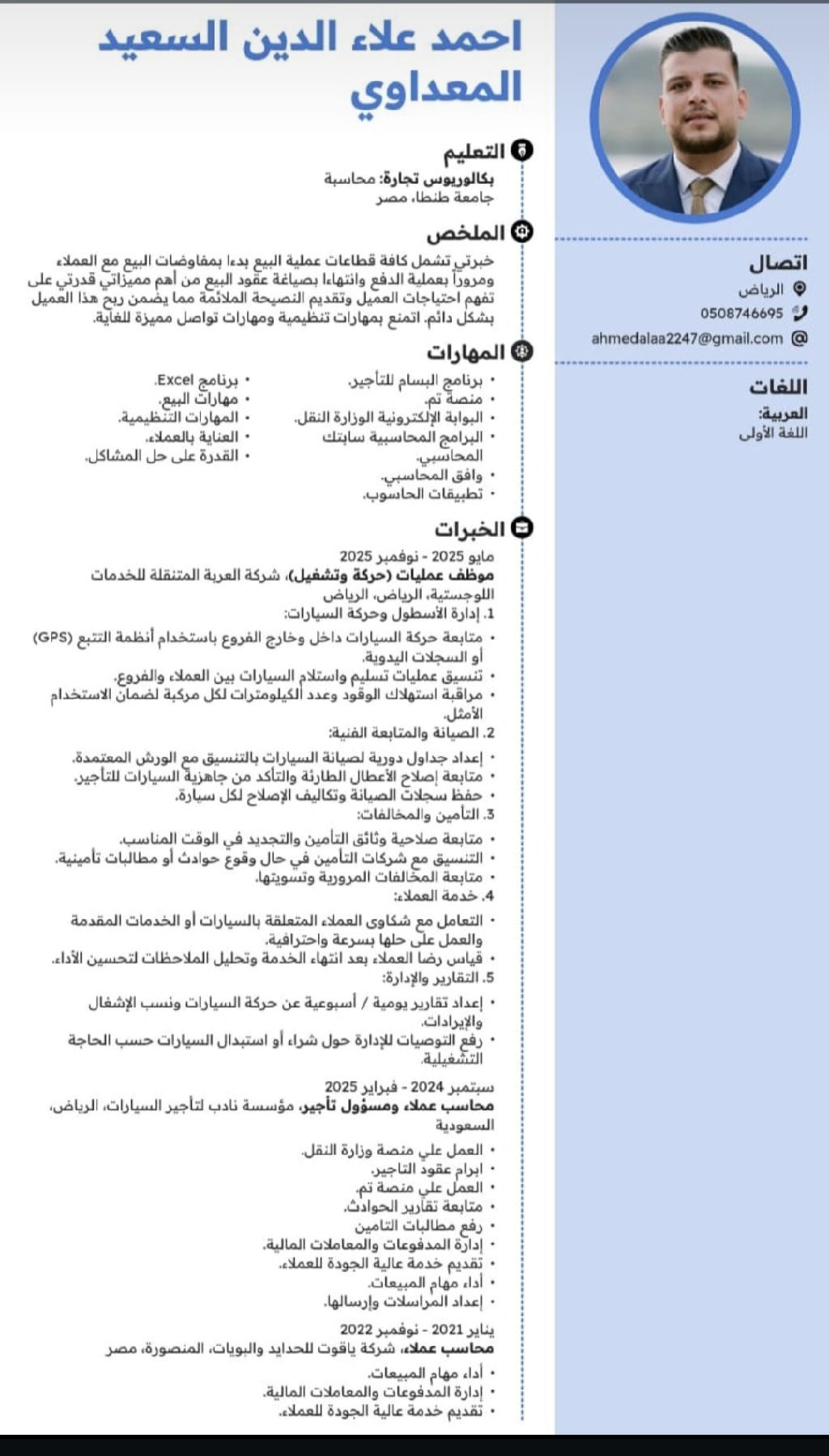 خبرة في شركات تأجير السيارات وخبرة في الشركات اللوجستية