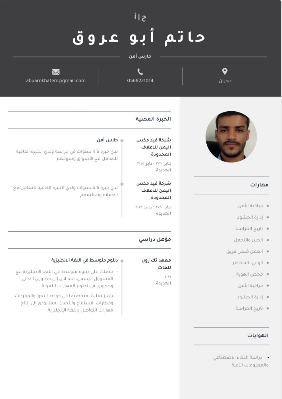 ابحث عن عمل حارس أمن في فلل أو مواقع أو استراحة. عملت سابقا حارس أمن لمدة 4.6 سنوات في شركة ولدي الخبرة الكافية في التعامل مع العملاء