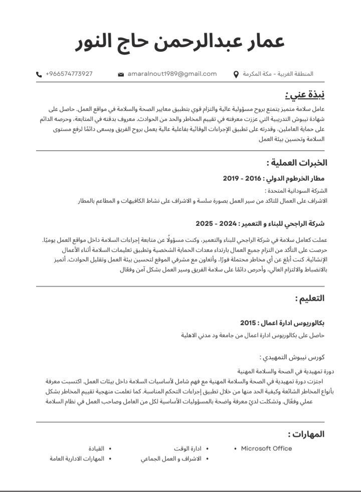 شاب سوداني الجنسية، جاد ومنتظم في العمل، أتحمل ضغط العمل، سريع التعلم، وأجيد التعامل مع فريق العمل. ابحث عن فرصة عمل مناسبة في أي مجال متاح. جاهز للعمل فورا