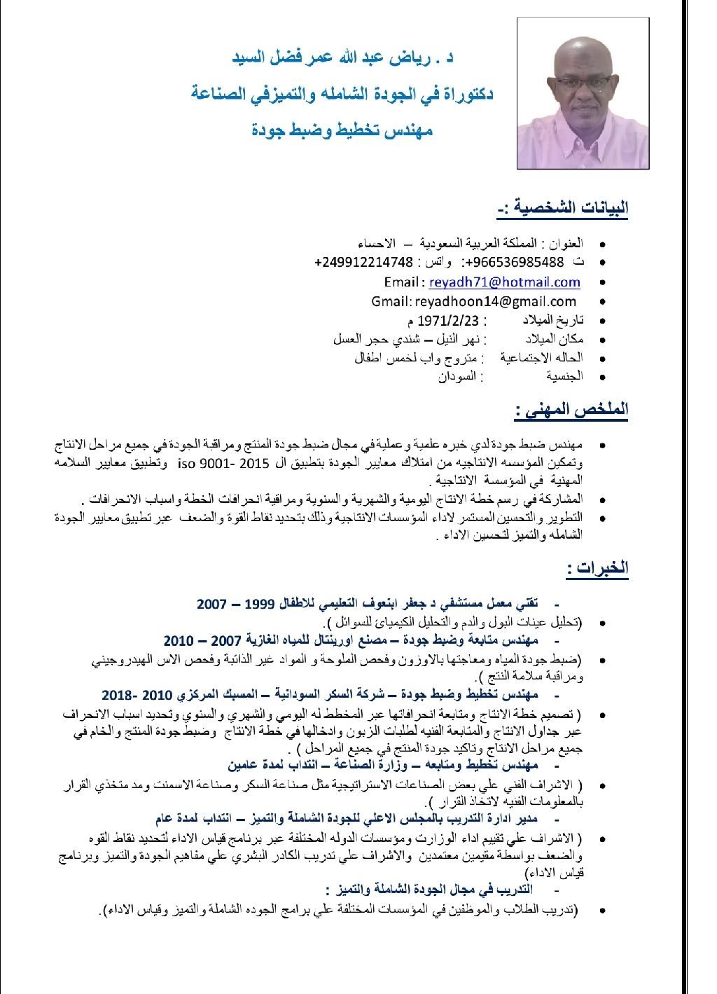 دكتور في الجودة الشاملة والتميز في الصناعة + مهندس كيميائي ومهندس حاسوب
