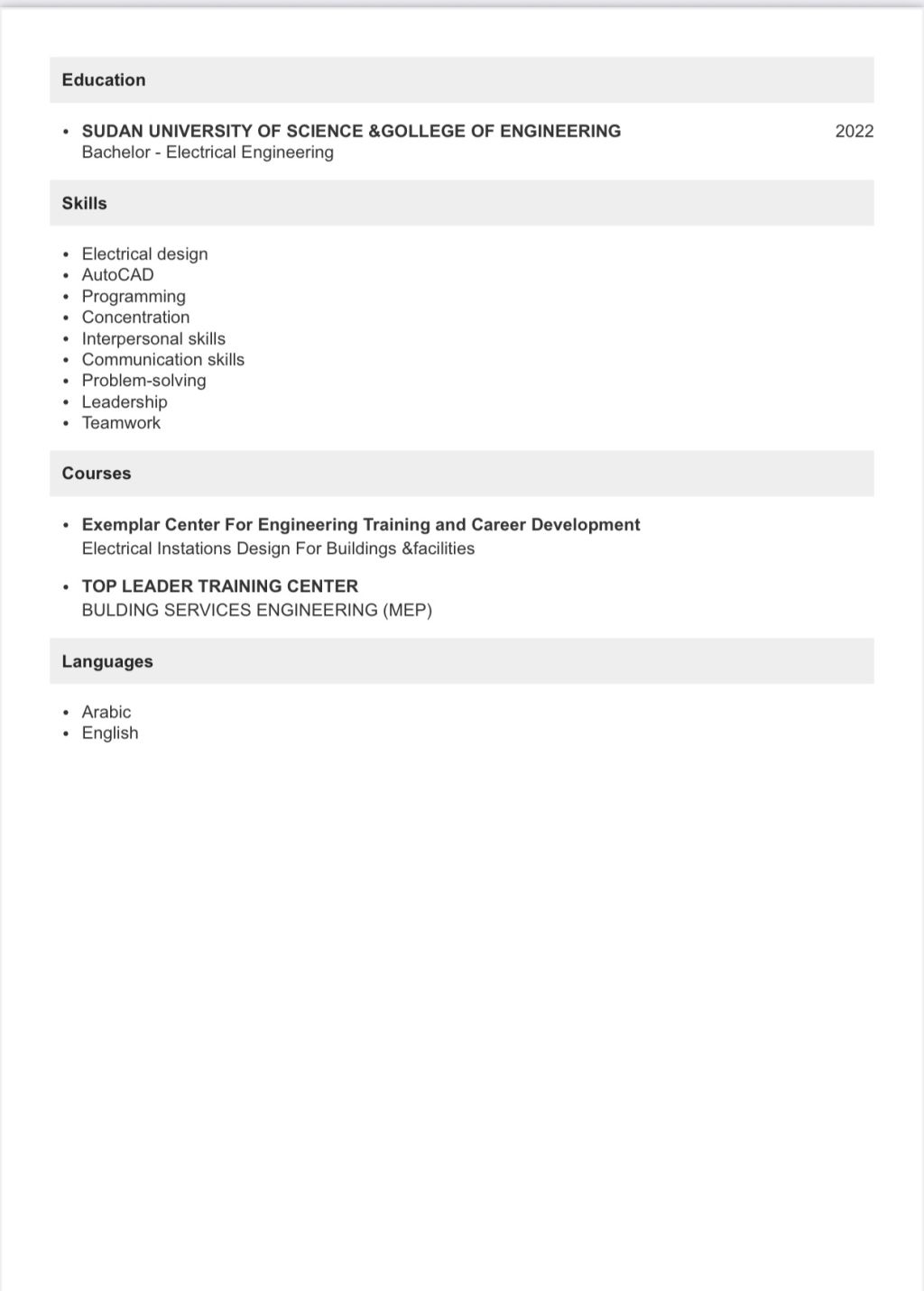 مهندس كهرباء عندي خبرة في التمديدات الكهربائية والعقد الموحد. إقامة ورخصة قيادة سارية. ابحث عن عمل