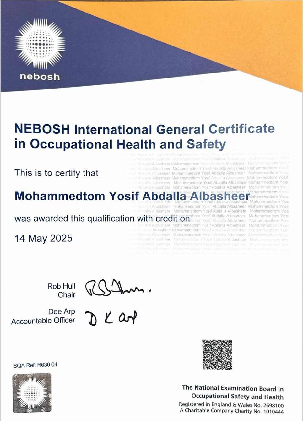 مراقب سلامه وصحة مهنية، حاصل علي بكالوريوس هندسة النفط، بخبرة مهنية أربعه سنوات ك مشرف مشروع في قسم الأمن والسلامة المهنية في قطاع النفط والغاز، حاصل على شهادة النيبوش الدولية وبعض من شهادات السيفتي الأخرى، متواجد حاليا داخل المملكة، وجاهز للعمل فورا