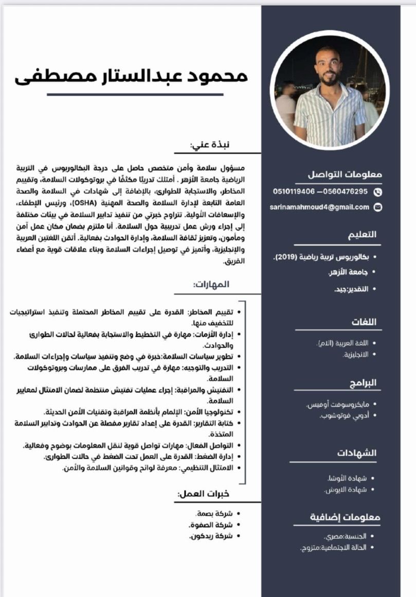 أرغب بالتقدم لشغل وظيفة أمن وسلامة لدى شركة كم الموقرة، حيث أرى أن مؤهلاتي وخبرتي تتناسب مع متطلبات هذه الوظيفة. امتلك خبرة في مجال الأمن والسلامة ولدي خبرة في العقد الموحد في شركة الكهرباء حاصل علي دورة الاوشا والايوش والاسعافات الأولية
