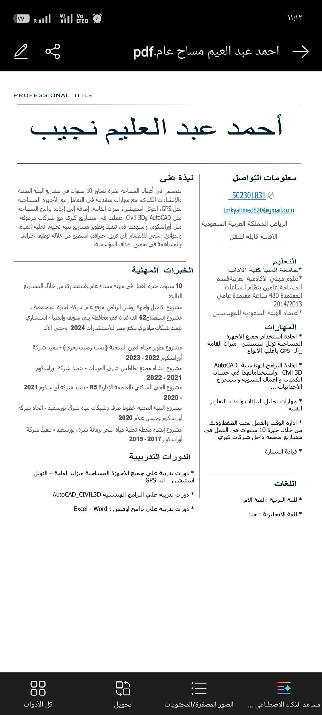مساح موقع ومكتب فني خبرة 10 سنوات في مجال الإنشاءات والبنية التحتية شبكات المياه والصرف الصحي خبرة علي جميع اجهزة المساحة توتل استيشن وGPS والبرامج الهندسية AutoCAD civil 3D وحساب الكميات واستخراج الإحداثيات وتجهيز الداتا لفريق العمل إقامة سارية قابل للنقل واعتماد هيئة المهندسين السعوديين امكانية العمل في أي مكان داخل المملكة
