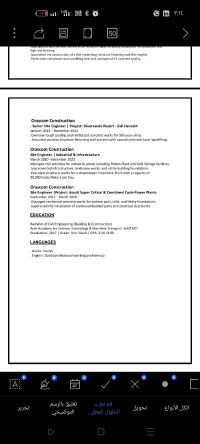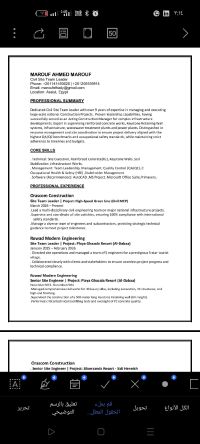 مهندس مدني (خريج 2017) خبرة عملية واسعة في إدارة وتنفيذ المواقع الانشائية والمشاريع القومية والسياحية. الخبرات السابقة العمل بشركات فئة أولى (أوراسكوم للإنشاءات، رواد الهندسة الحديثة) المهارات الفنية اجادة تامة لأعمال الخرسانات، التشطيبات المتخصصة (إيبوكسي وعزل) أنظمة أل Keystone & Geogrid، وإدارة الفرق الفنية بالموقع. المهارات الادارية قيادة مجموعات العمل، متابعة الجداول الزمنية