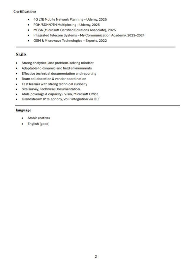 مهندس اتصالات يبحث عن عمل (الرياض) أنا مهندس اتصالات متواجد في الرياض وابحث عن فرصة عمل في مجال الاتصالات لدي خبرة عملية في شبكات FTTX / FTTH (OSP & ISP) لحام الألياف البصرية واختبارات OTDR / Power Meter تركيب وتجهيز OLT / ONT/ ODF خبرة في DWDM - SDH - Microwave - 4G/ 5G RAN أعمال الميدان تمديد كابلات، دكتات، Handholes جاهز للعمل فورا للتواصل