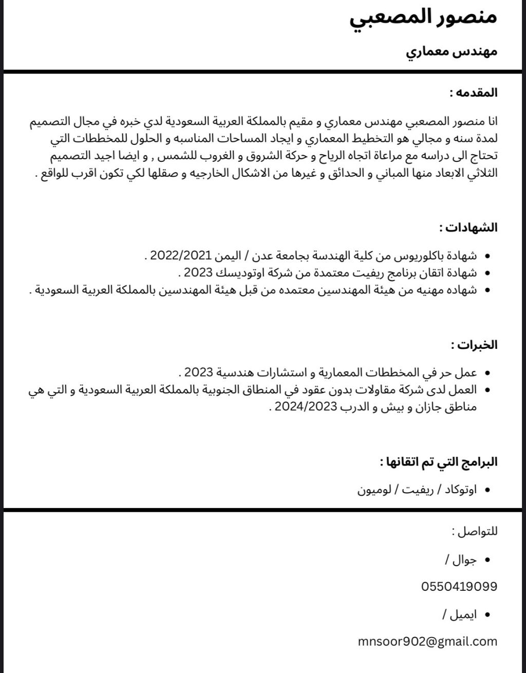 مهندس معماري ابحث عن فرصة عمل في مجال التخطيط العمراني والتصميم الخارجي ثلاثي الأبعاد