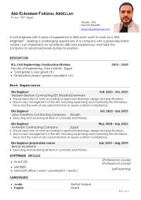 مهندس مدني خبرة خمس سنوات في مجال "الخرسانات والتشطيبات" انشاء وتشطيب مولات، مدارس ومستشفيات، مجمعات سكنية مراكز حكومية - خبرة في ادارة المشاريع - اللغة الانجليزية جيد - أجيد العمل على العديد من البرامج على سبيل المثال لا الحصر الاوتوكاد والساب والأكسيل والوورد وكذلك تسعير حصر كميات عمل مستخلصات والخ مسجل لدى الهيئة الهندسية السعودية رخصة قيادة - إقامة قابلة للنقل