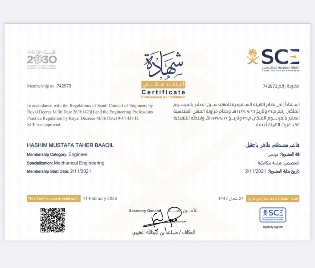 المهنة في الإقامة مهندس ميكانيكي امتلك عضوية هيئة مهندسين متاح نقل كفالة الى مؤسسة سلامة أو مصاعد لغرض الاعتماد أو التصنيف أو اعتماد الدفاع المدني