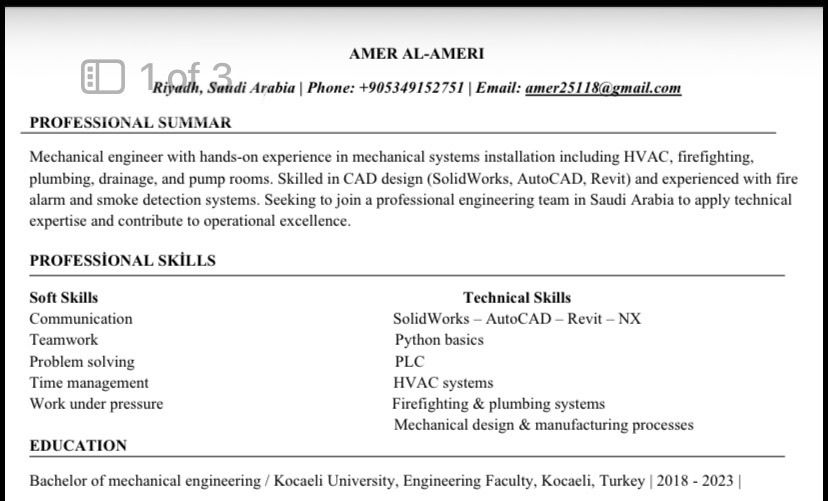 مهندس ميكانيكا خبير في أعمال التكييف والأمن والسلامة لسنتين