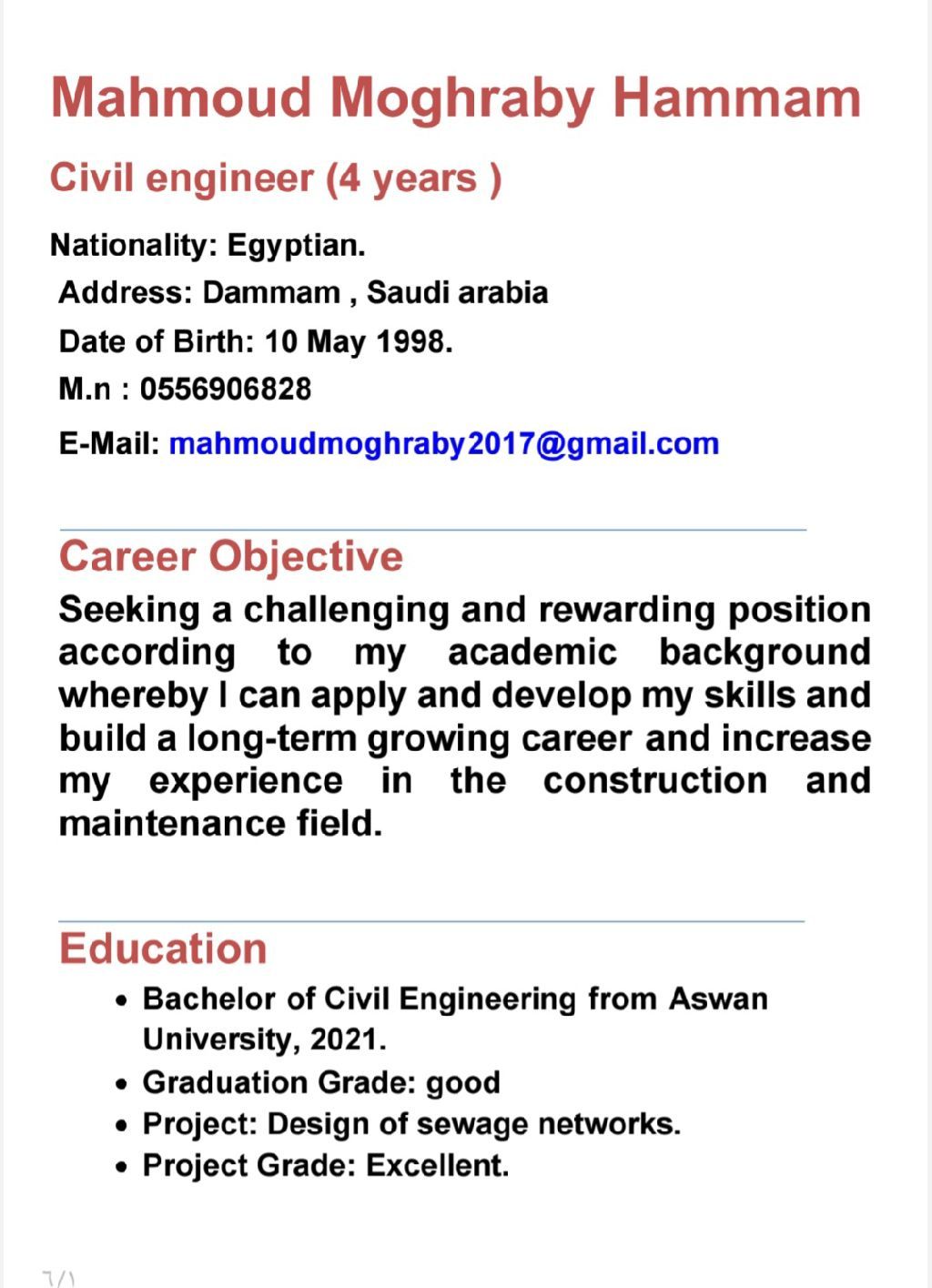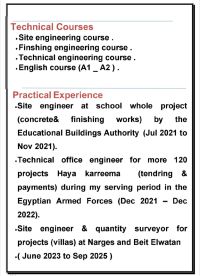 مهندس مدني متواجد في الدمام ابحث عن فرصة عمل لدى خبرة 4 سنوات خبرة سنة في أل Tendring & payments خبرة 3 سنوات تنفيذ منشاءات خرسانة فلل (concrete - finishing - quantity surveyor) أجيد التحدث باللغة الانجليزية وحاصل على المستوى A2 وجاري الحصول على B1 على دراية بأعمال الأساسات (الخوازيق) على دراية بتنفيذ الأعمال الخرسانية وال post tension متاح نقل كفالة