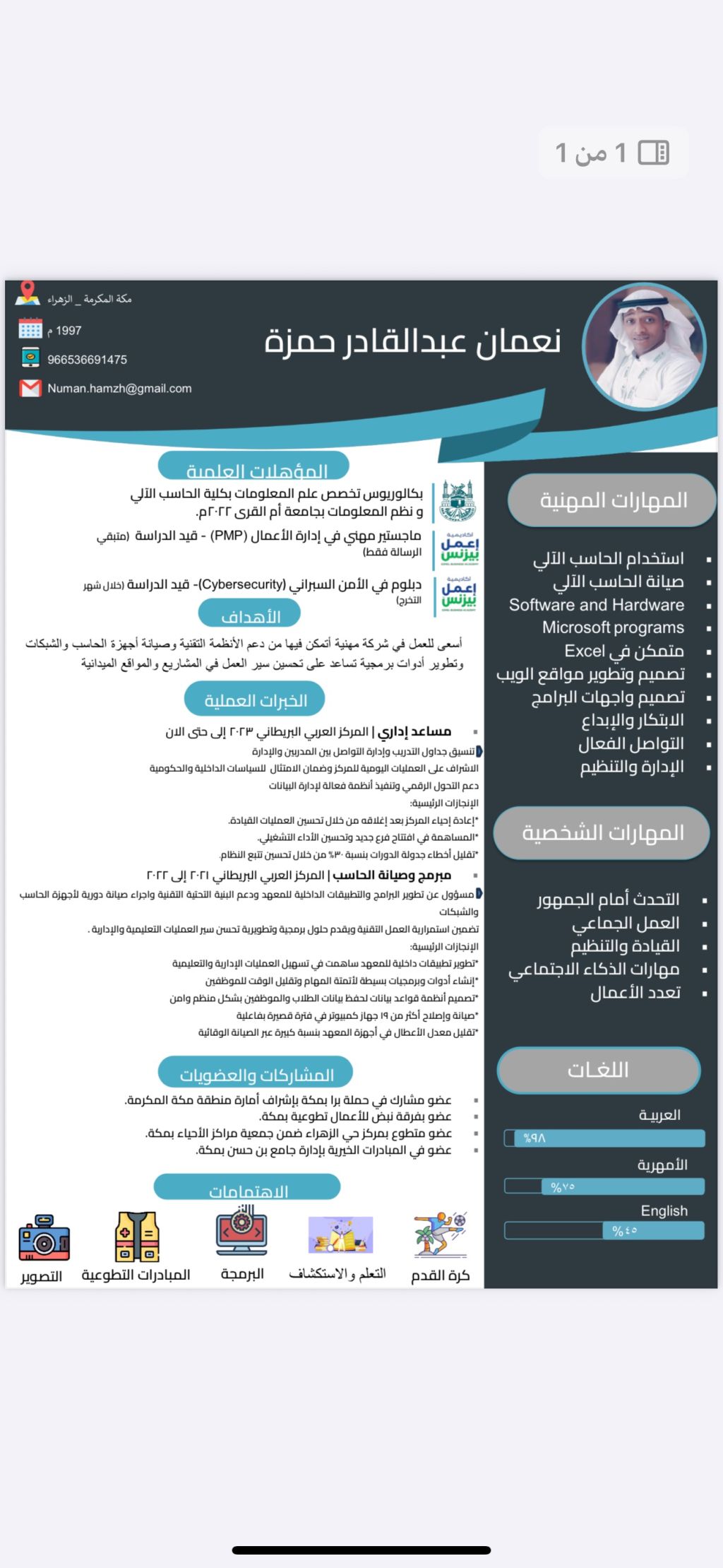 ابحث عن عمل حاصل على البكالوريوس حاسب الآلي من جامعة أم القرى، وحاصل على ماجستير مهني في ادارة أعمال خبير في تطبيقات المايكروسوفت أوفيس وخبير في الادارة بشكل عام