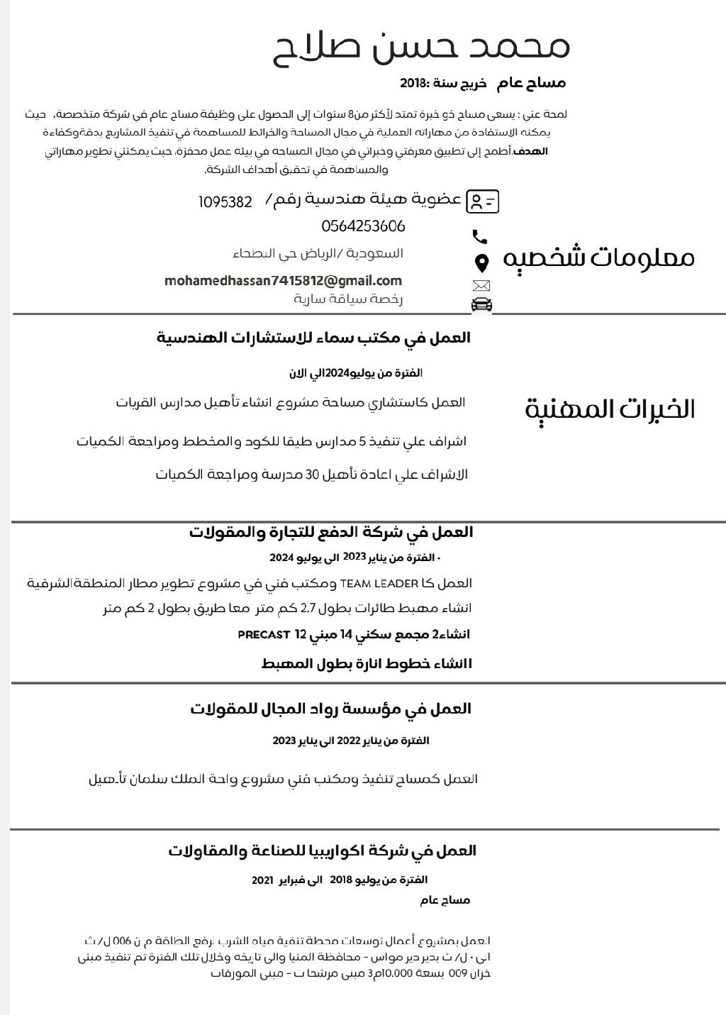 محمد حسن مساح عام خبرة 8 سنوات العمل علي جميع الاجهزة والبرامج الهندسية
