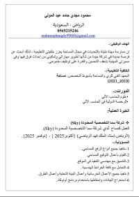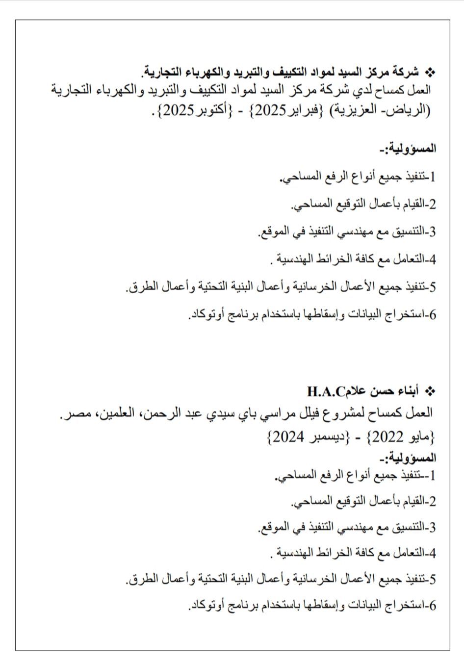 أنا محمود مجدي مساح عام مقيم في الرياض، ابحث عن فرصة عمل أستطيع من خلالها توظيف خبراتي لتحقيق نجاحات ملموسة. أتمتع بمهارات متقدمة عالية في استخدام الحاسب الآلي والبرامج والاجهزة المساحية حل المشكلات التقنية، واعداد التقارير باحترافية. لدي قدرة عالية على العمل تحت الضغط، إدارة الفريق، إدارة الوقت بفعالية، والتكيف مع متغيرات العمل. أسعى لتطوير نفسي والمساهمة في بيئة عمل ناجحة. للتواصل