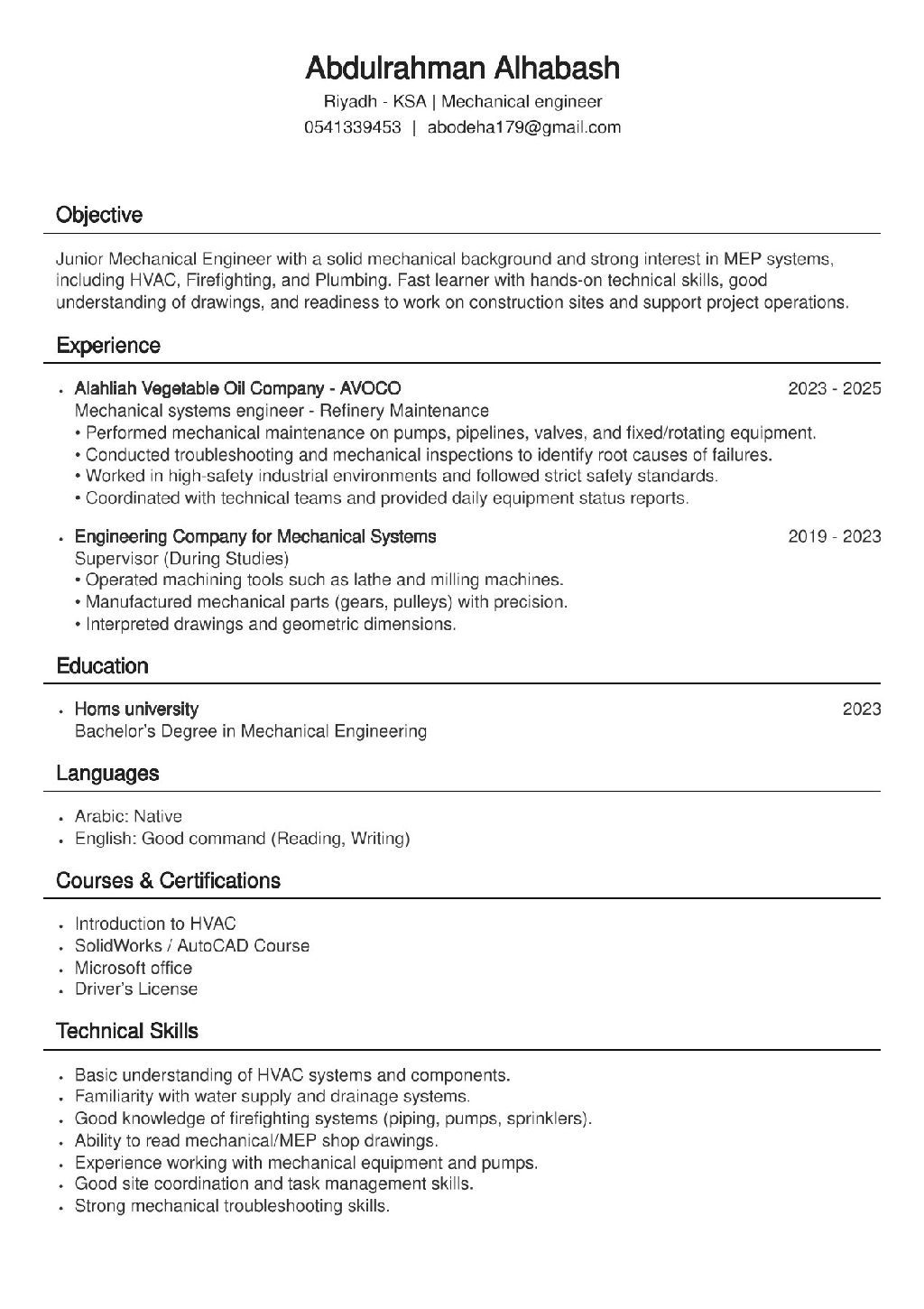 مهندس ميكانيك بخبرة ميدانية متاح للعمل